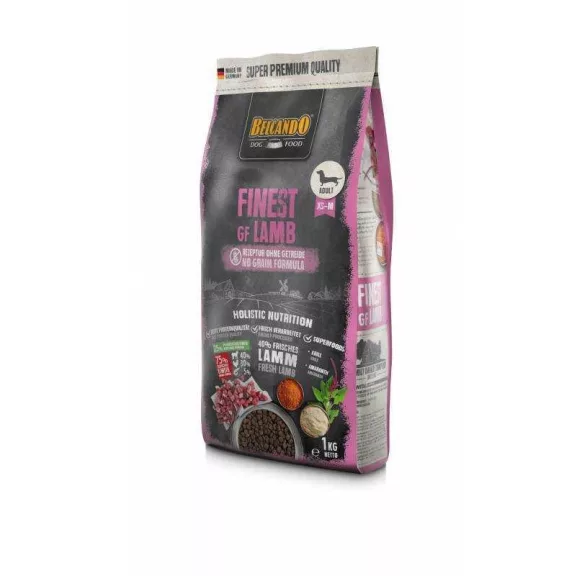 friss bárányhús, -máj, -tüdő (összesen: 40 %); amaránt (16,5 %); burgonyakeményítő; bárány fehérje, szárított (10 %); hamuszegény baromfi fehérje, szárított; borsódara; hidrolizált baromfimáj; tengeri zooplankton, darált, őrölt (világítórák, 2,5 %); szárított sörélesztő (2,5 %); baromfizsír; szőlőmag kivonat; szárított szentjánoskenyér-hüvely; cukormentes szárított répaszelet; azték zsályamag; lazacolaj; nátrium-klorid; kálium-klorid; szárított gyógynövények (összesen: 0,2 %; csalánlevél, tárnicsgyökér, ezerjófű, kamilla, ánizs, kömény, fagyöngy, cickafark, szederlevél); moháve jukka