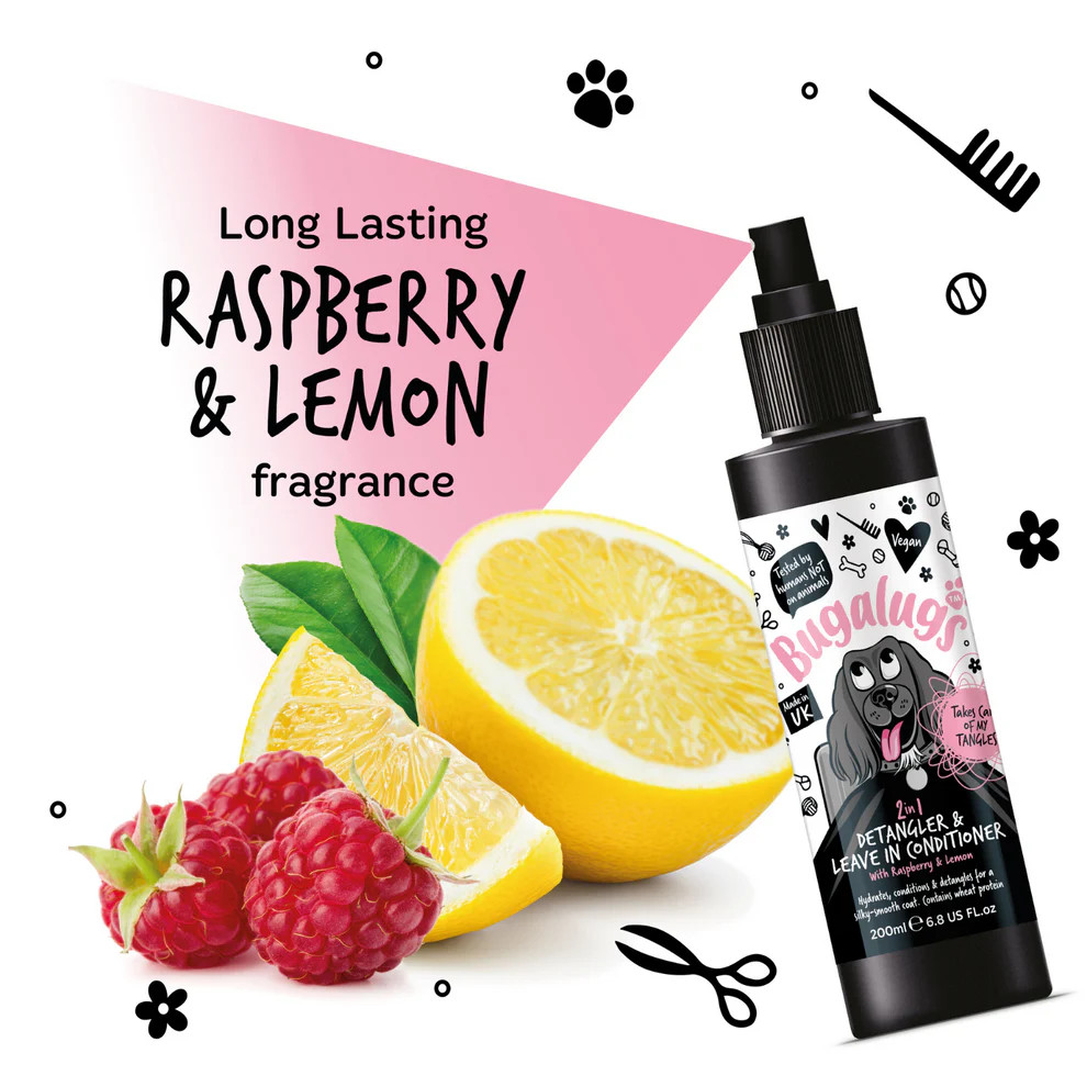 A Bugalugs 2in1 Csomóbontó és hidratáló spray málna, citrom illattal 200ml a tökéletes választás minden gazdi számára, aki szeretné megkönnyíteni kedvence szőrápolását, miközben természetes védelmet és csodás illatot biztosít bundájának.