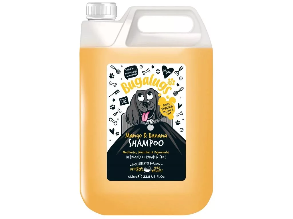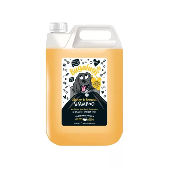 A Bugalugs Mangó és Banán sampon egy könnyed, vegán formula, amely növényi eredetű tisztító összetevőkkel gyengéden, de hatékonyan tisztítja a kutya bőrét és szőrét, miközben megőrzi a természetes védekezőréteget. Az összetevők között található krokoszbarvíró-olaj, napraforgóolaj, valamint mangó- és banánkivonat, amelyek hidratálnak és regenerálnak, így a szőrzet puha, fényes és egészséges marad. A koloidális zab nyugtatja az érzékeny bőrt, segítve a bőr egyensúlyának fenntartását. Alkalmas minden szőrtípusra, és már kölyökkutyáknál is használható. A koncentrált formula praktikus a kozmetikusok számára, akik értékelik a könnyű habzást és gyors öblítést.