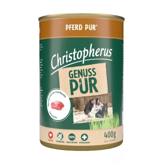 Összetétel: 70% lóhús és belsőségek, 25,8% húsleves, 2% borsókeményítő, 1% lignocellulóz, 1% kalcium-karbonát, 0,2% lenolaj.