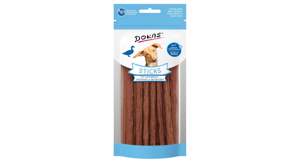 A Dokas Sticks Kacsamellel, Kacsaszívvel és Kacsamájjal a természetes és egészséges jutalomfalatok kategóriájának igazi gyöngyszemei. Ezek a puha, könnyen rágható pálcikák bőségesen tartalmaznak magas minőségű kacsahúst, kacsaszívet és kacsamájat, így a kutyád nemcsak ínycsiklandó falatokat kap, hanem értékes tápanyagokban gazdag finomságot is.