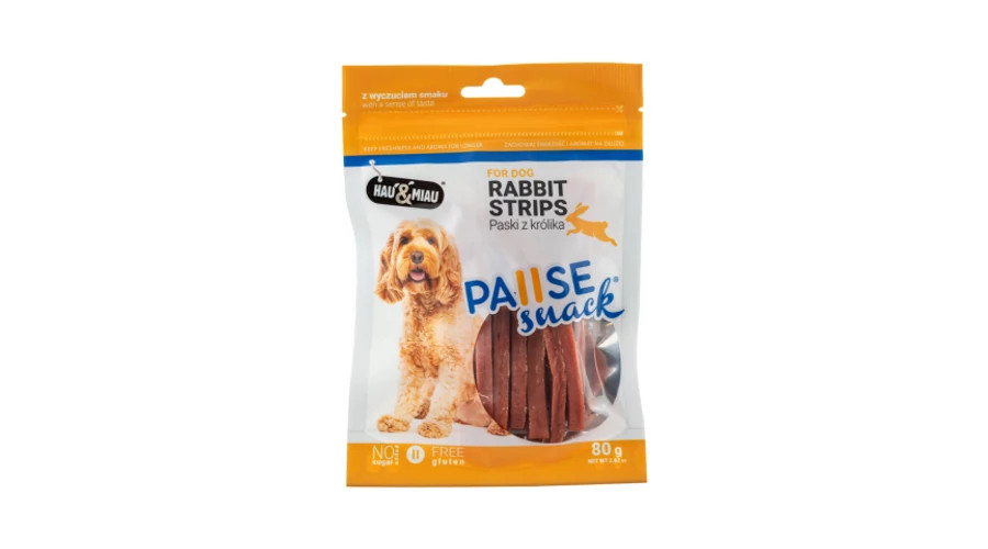 A Hau & Miau 100% nyúlhús csíkok egy olyan prémium minőségű, természetes jutalomfalat, amelyet úgy állítottak össze, hogy kutyák és macskák számára egyaránt egészséges, könnyen emészthető és ízletes kiegészítője legyen a napi étrendnek. A falatok kiemelkedően magas, 90,5% nyúlhús tartalommal készülnek, ami garantálja a kiváló minőséget és a megfelelő állati fehérjeforrást. A nyúlhús az egyik legkíméletesebb, allergiabarát fehérje, így olyan állatoknál is kiváló választás lehet, akik érzékenyen reagálnak a csirke-, marha- vagy sertéshúsra.