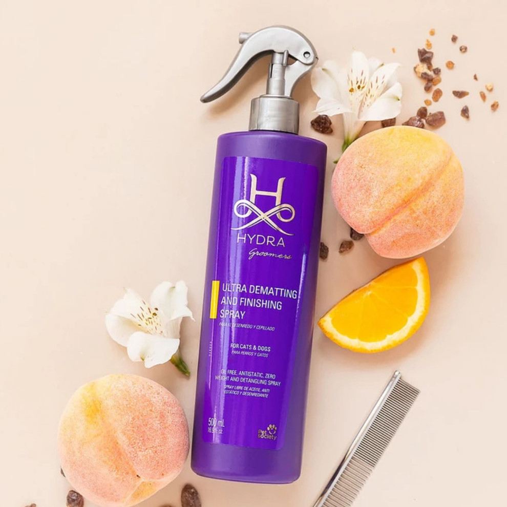 A Hydra Ultra Dematting Spray professzionális termék hosszú és sűrű szőrzetű kutyák és macskák számára, amely jelentősen megkönnyíti a fésülést és a csomók eltávolítását. A speciális formula egyedülálló hatóanyag-keveréket tartalmaz, amely nemcsak kisimítja a szőrszálakat, hanem csökkenti az újabb csomók kialakulását és a göndörödést, így a szőrzet sima, puha és fényes marad. Ez a spray a fürdetés előtti ápolás alapvető terméke, amely lerövidíti a fésülésre és bontásra fordított időt, miközben professzionális eredményt biztosít.
