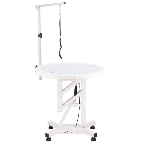 A fehér acélszerkezetet porszórt bevonattal látták el, így a bevonat tartósabb. Az asztallap erős műanyagból készült. Az aljára szerelt lábak állíthatóak, így nagyon egyenetlen felületeken is vízszintbe tudod állítani az asztalt. A készlet tartalmaz egy távirányítót, amely lehetővé teszi a világítás időzített beállítását (időzítő funkció). A pneumatikus emelő működése: a beállítást sűrített levegővel hajtják végre egy pneumatikus hajtóművel. Az asztal felemeléséhez vagy leengedéséhez nyomja meg a pedált, és kézzel emelje fel vagy nyomja meg az asztallapot. Tipp: A LED-világítás bekapcsolásához csatlakoztassa az USB-kábelt (tartozék) a tápegységhez (nem tartozék). Erre a célra egy power bank is használható, amelyhez a pult alatt egy speciális polc található.