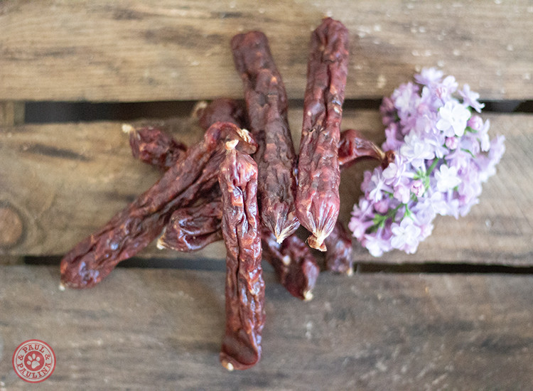 Ez az ízletes kolbász nem morzsálódik, mégis könnyen vágható, így ideális kisebb falatokra is, akár edzésekhez, akár séták során használod jutalomként.