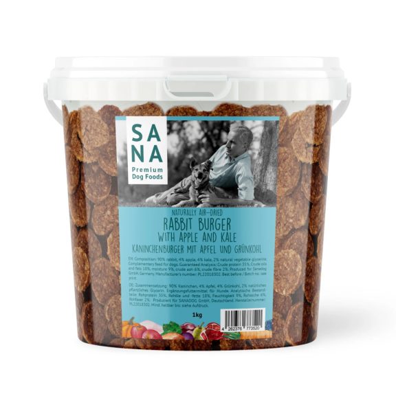 Összetevők: 90% nyúl, 4% alma, 4% kelkáposzta, 2% természetes növényi glicerin.