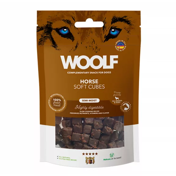 A Woolf Puha Főtt Lóhúsos Jutalomfalat 100% -ban kiváló minőségű fehérjeforrásokból készül, hogy a legmagasabb minőséget és a legjobb táplálékfelvételt biztosítsa. Az összetevők feldolgozása után vegyi adalékanyagok, tartósítószerek és színezék hozzáadása nélkül kerülnek visszazárható csomagolásba. Hogy megőrizze a termék így is a puhaságát, tartósságát a csomagba oxigénnyelőt helyeznek.